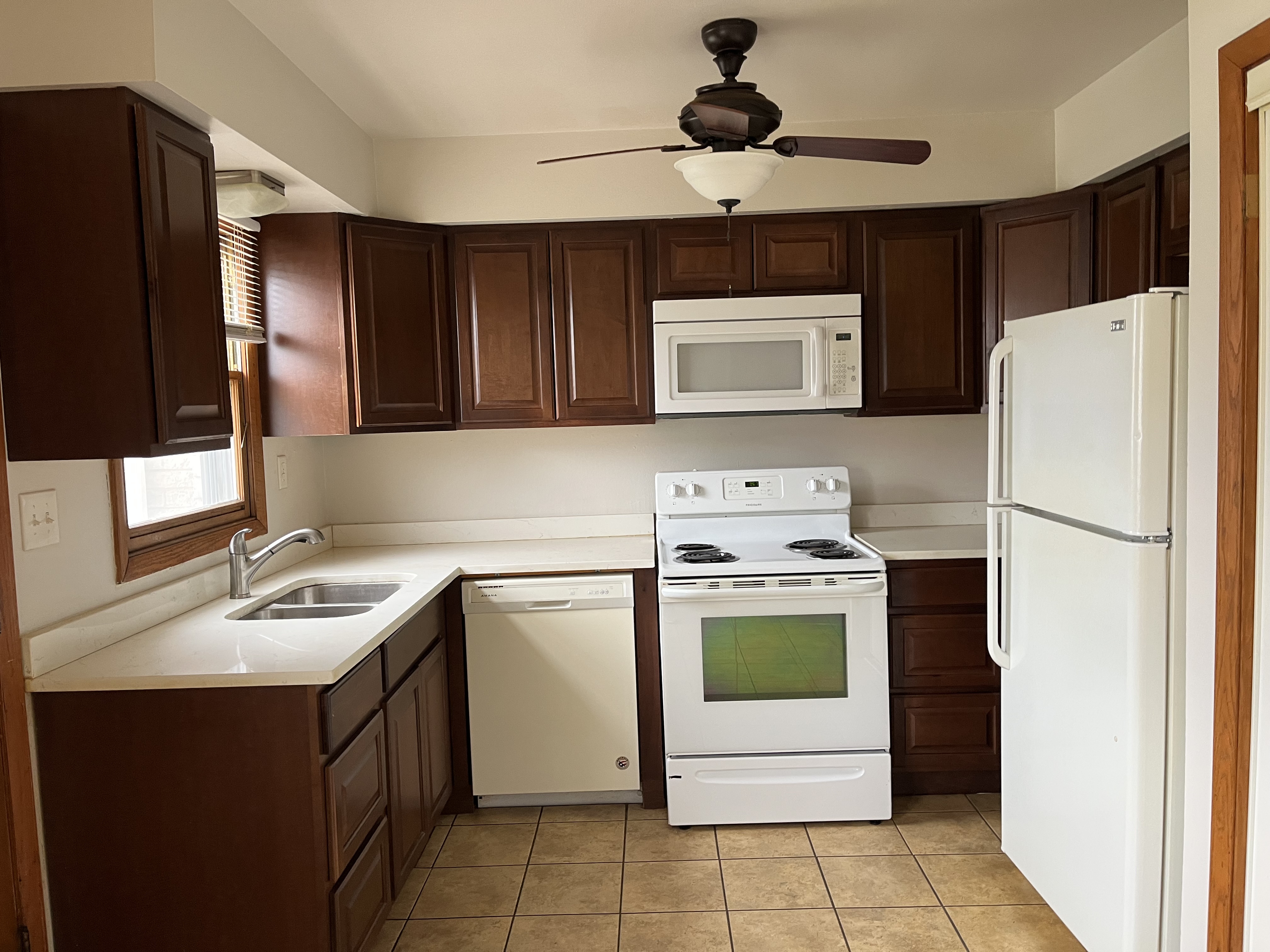 Large townhouse in southwestern Milwaukee. There are 3 bedrooms and 1.5 bathrooms with one full bath on the second floor. On the main floor, there is a large living room with an eat in kitchen. The basement is finished with a updated rec room and washer/dryer hookups in a separate room in the basement. Kitchen was recently updated with new cabinets and countertops. The full bathroom was also recently remodeled with new tile. Utilities are not included. Sorry, no pets.